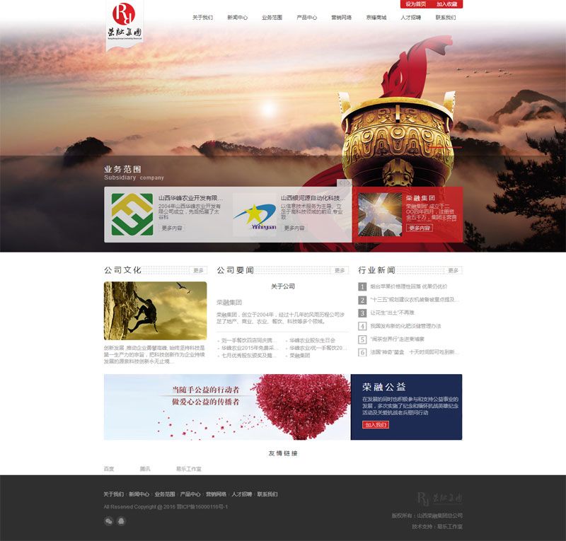 荣融集团 POST TIME: 2016年02月16日 “荣融集团” 成立于二OO四年四月,注册资金五千万,集团主营商贸、房地产、农业种植(科研)、餐饮业、物业管理、自动化科技、珠宝、网上商城经过十几年的不断开拓进取,实力逐年递增,成为跨越发展的多元化产业集团。http://www.rongrongw.com/
